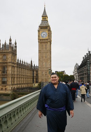 大相撲のロンドン公演に臨む横綱大の里(写真)らが14日、ロンドン中心部を観光した。「ビッグベン」の愛称で知られる国会議事堂の時計塔周辺などを散策。観光客から記念撮影を求められた。 【時事通信社】