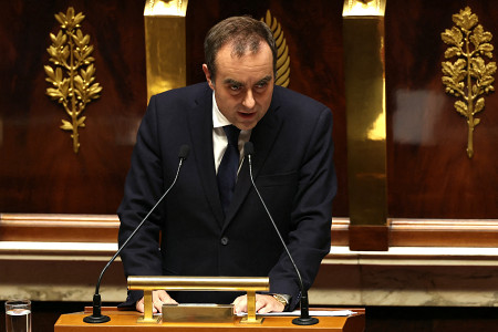 フランスのルコルニュ首相は14日、下院で演説し、長期化している政局の混迷打開に向け、マクロン政権が2023年に強行導入した年金改革の停止を表明した。中道左派野党・社会党の要求を受け入れた=パリ 【AFP時事】