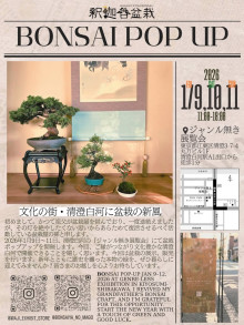 清澄白河駅から徒歩すぐの場所にあるストア兼プレスルーム「ジャンル無き展覧会」(江東区清澄3)が1月9日~11日まで、「盆栽POP UP(ポップアップ)ストア」と題した盆栽の展示・販売を開催する。