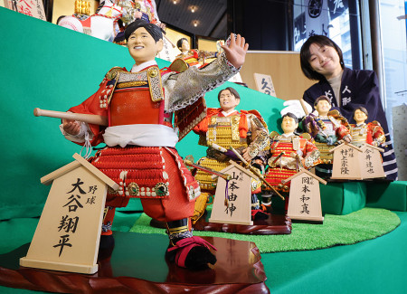 17日、2026年の活躍が期待される「今年の期待大将」が東京都台東区の久月本社でお披露目された。14回目の今回は米大リーグ・ドジャースの大谷翔平選手や山本由伸選手などが選ばれた。 【時事通信社】