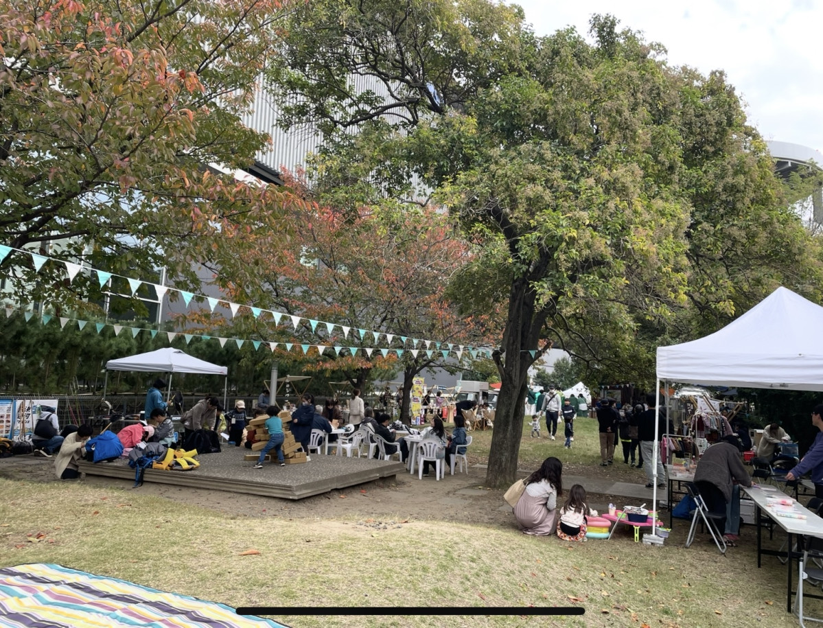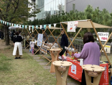 東砂一丁目・二丁目町会が主催し、汐浜テラスに隣接した公園にて「汐浜運河マルシェ」が秋晴れのなか、開催されている。