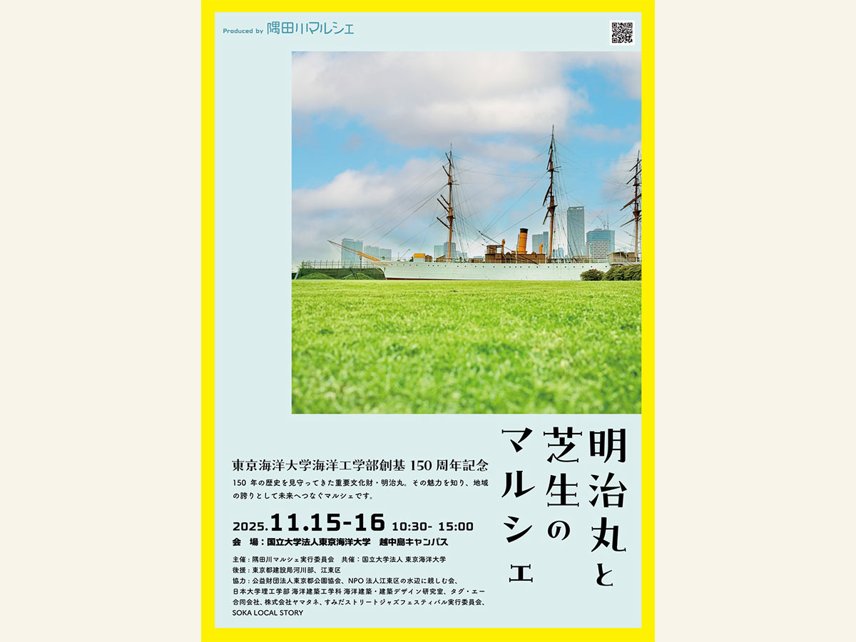 主催する隅田川マルシェ実行委員会のイワタマサヨシさんは「明治丸の詳細を知って、その存在の大きさに驚いた。江東区は震災や空襲で多くの建物や記憶を失ったが、明治丸は150年もの間、海とともに江東の街を見つめ続けてきた生き証人。水辺の街の過去と今をつなぐこの船の存在をもっと多くの人に知ってほしい。そこから生まれる誇りやつながりが地域の新しい力になると信じている。マルシェは、そのきっかけをつくるための場になれば」と来場を呼びかける。
