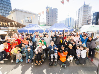 同広場をぐるりと囲むように並ぶブースには、スコーンの「物語舎」、台湾人ケーキ職人が作るパイナップルケーキの「Aireys」、高知県産ショウガ専門店「突破堂」などのフード系や、ネパールやペルー産のコーヒーなどのドリンク系のほか、段ボール工作やキーホルダー作りなどの親子体験系も並ぶ。