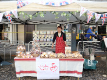 今春、門前仲町にオープンした「門仲パン屋」(江東区門前仲町1)は総菜パンや菓子パンを、八丁堀にある「マツイノカヌレ」(中央区)は食感にこだわったカヌレを、錦糸町にある日本茶ミルクティー専門店「And Tei」(墨田区)はスコーンなどの焼き菓子を、築地に本店がある「オリミネベーカーズ」(中央区)は折峯食パンを歩行者天国となった商店街で販売する。