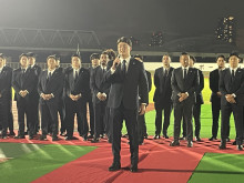 イベントの最後はスーツに着替えた選手たちが勢揃いして今シーズンの出陣式を実施。開幕戦の勝利をファンの前で誓った。