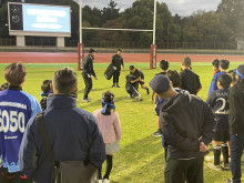 ラグビーリーグワンディヴィジョン2(D2)の2025-26シーズン開幕を12月13日に控え、清水建設ブルーシャークスが出陣式を11月22日に、ホストスタジアムの夢の島競技場(江東区夢の島1)で開催した。