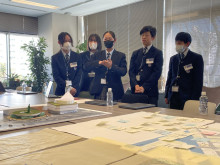 江東区立深川第八中学校(江東区塩浜2)の男女生徒5人が職業体験プログラムとして1月27日から29日にかけて、久米設計本社(潮見2)で潮見駅前の模擬開発提案に挑んだ。