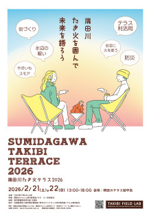 川沿いでたき火を囲んで未来を語り合う「SUMIDAGAWA TAKIBI TERRACE(隅田川たき火テラス)2026」が2月21日・22日、隅田川テラス越中島エリア(江東区越中島1)で開催される。