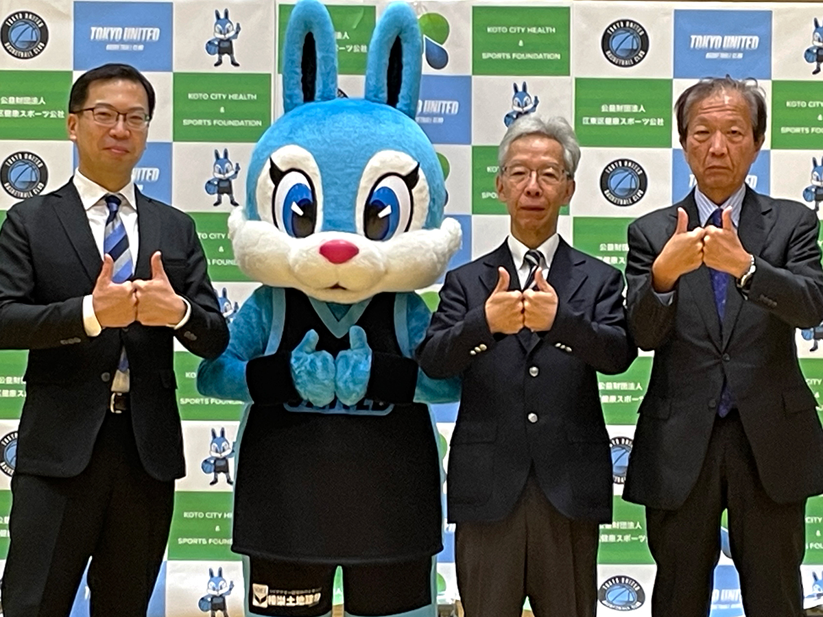 公益財団法人「江東区健康スポーツ公社」と東京ユナイテッドバスケットボールクラブが地域連携に関わる協定を結び、10月7日、深川スポーツセンター(江東区越中島1)大体育館で連携協定締結記念式典を行った。
