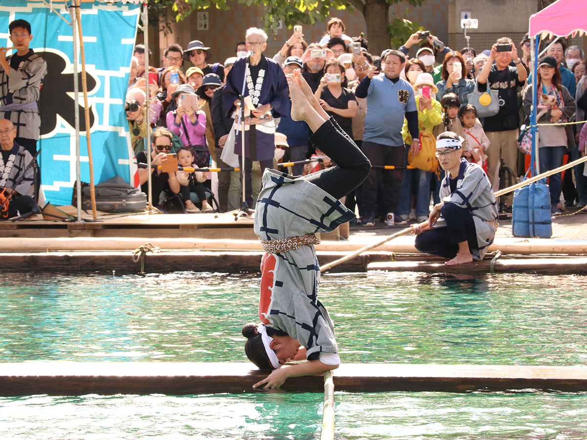 木場公園の入口広場で披露される「木場の角乗」に観客も釘付け(資料提供=江東区広報広聴課)