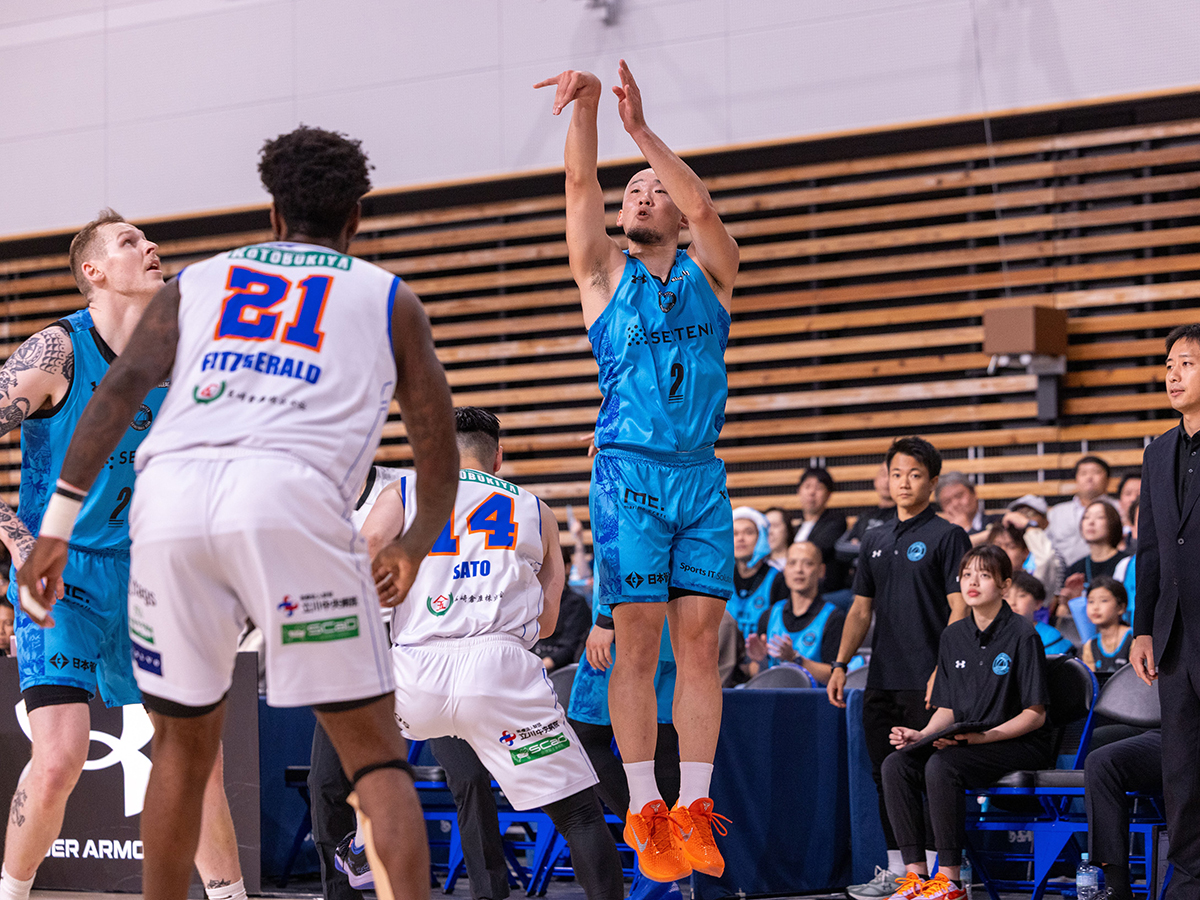先発シューティングガードを務めた川島蓮選手がシュートを放つ(© TOKYO UNITED BC)
