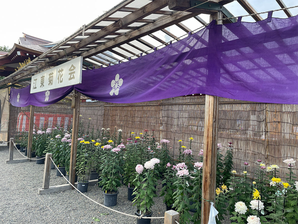 「菊まつり」が現在、亀戸天神社で開催されている。