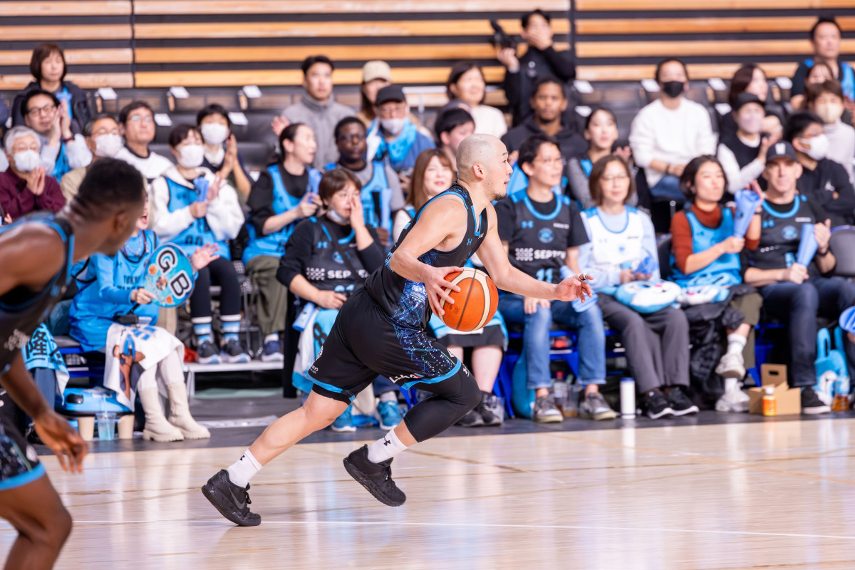 スターターとして魂のプレーを見せる川島選手(© TOKYO UNITED BC)