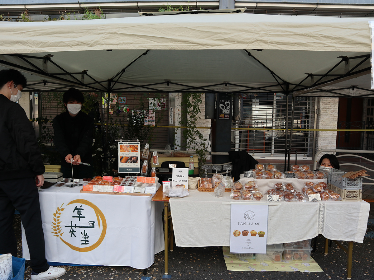 パンと焼き菓子のシェアキッチン【uni】のブースでは【earth & m】と【隼英堂】の焼き菓子やパンも並ぶ