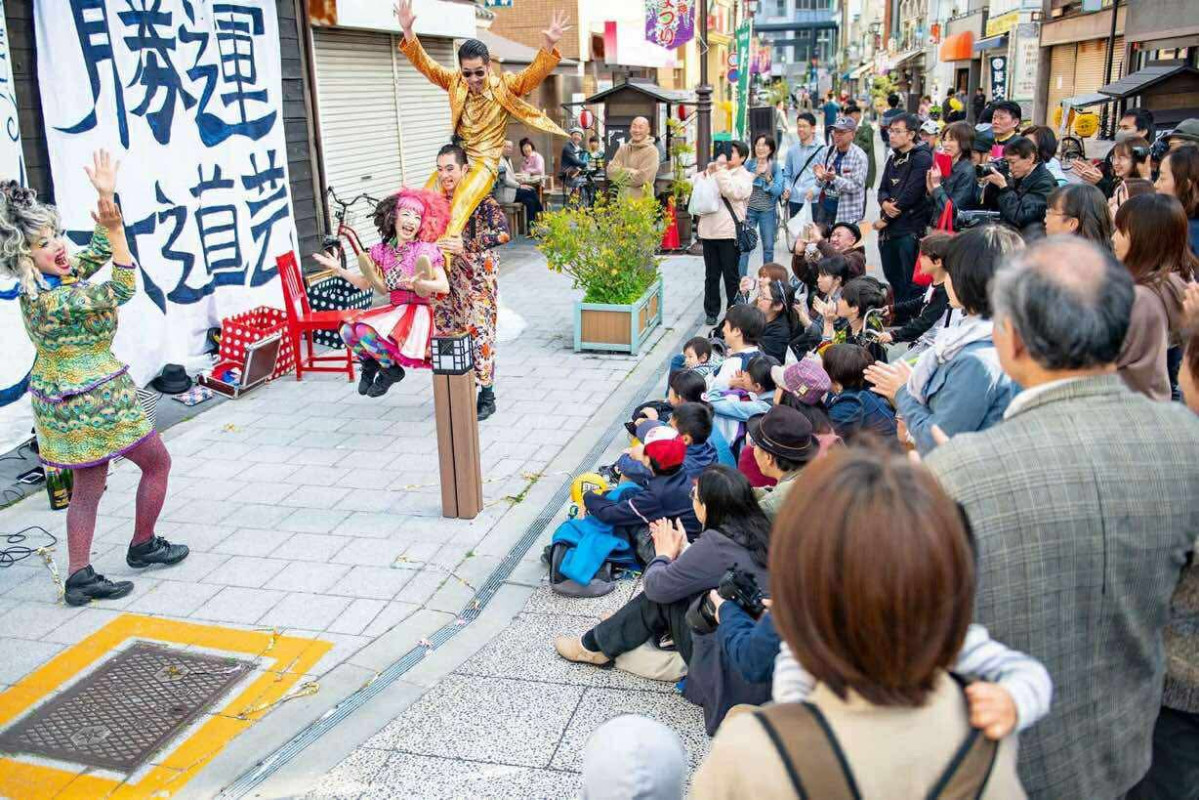 大道芸人がパフォーマンスで街を盛り上げる「かめいど勝運大道芸2025」が11月30日、亀戸香取神社(江東区亀戸3)参道の亀戸勝運商店街で開催される。