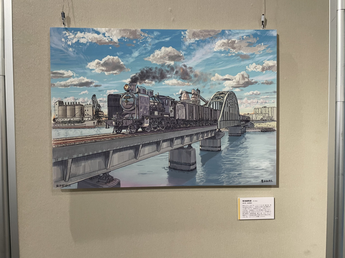 晴海鉄道の廃線で利用されなくなったが、今年9月に春海橋公園遊歩道として開通した旧晴海鉄道橋の歴史をアートでひもとく特別展「アートでつなぐ旧晴海鉄道橋展」が現在、豊洲文化センター(江東区豊洲2)内豊洲シビックセンター1階・ギャラリーで開催されている。