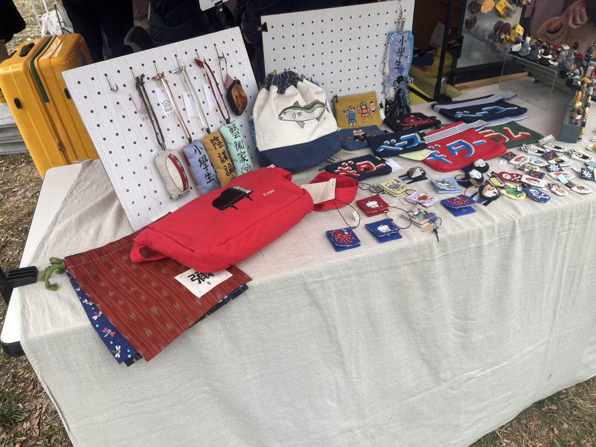 刺繍入りの小物などが並ぶ「うこわや」のブース