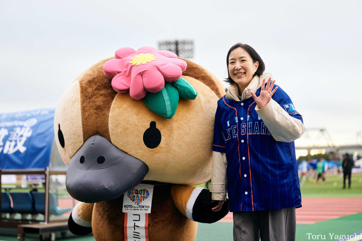 コトミちゃんも一緒に応援(写真提供=清水建設江東ブルーシャークス)
