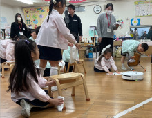 木場公園から東に徒歩すぐの場所にある「認定こども園 文化教養学園」(江東区石島6)で12月18日、園児がロボット掃除機「ルンバ」と一緒に年末大掃除に取り組む体験授業が行われた。