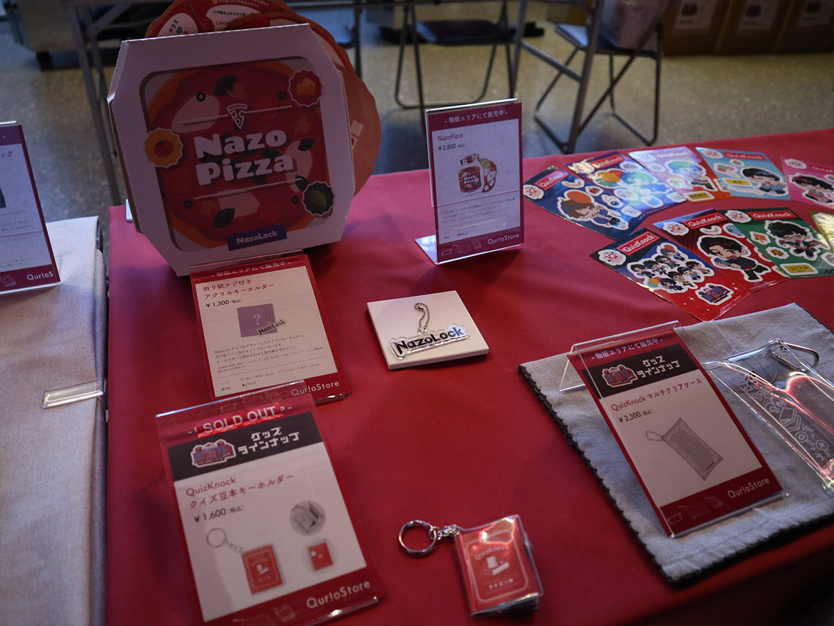 ステッカーやマルチクリアケースなどオリジナルグッズが並ぶ物販ブース