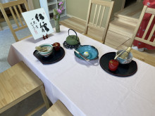 テーブルであっても花や色紙を用意するなど、茶道の基本を学ぶことができる