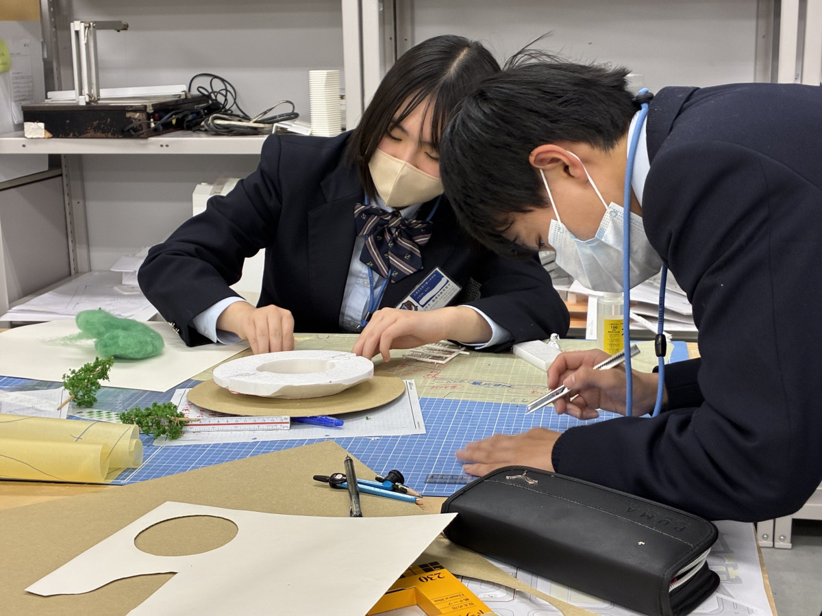 江東区立深川第八中学校(江東区塩浜2)の男女生徒5人が職業体験プログラムとして1月27日から29日にかけて、久米設計本社(潮見2)で潮見駅前の模擬開発提案に挑んだ。
