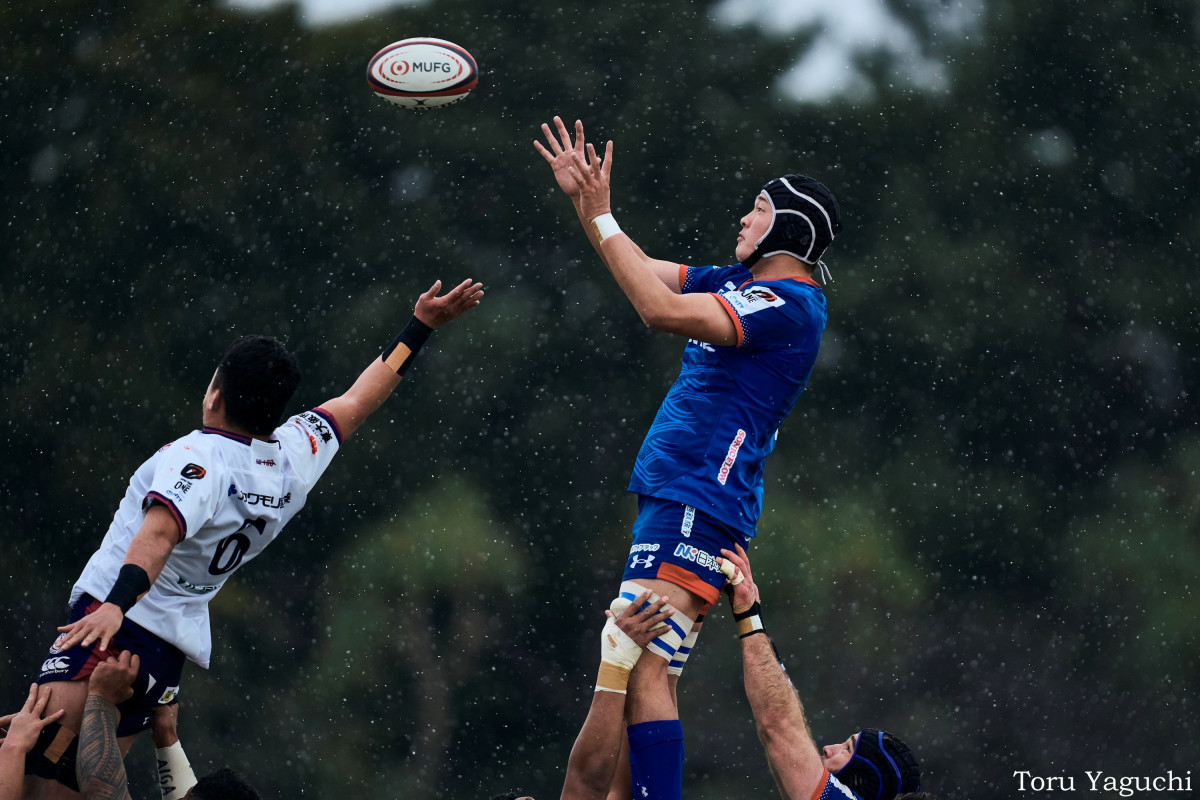 ラグビーリーグワンD2の清水建設江東ブルーシャークスは開幕から4連勝同士の花園近鉄ライナーズと2月7日、ホストスタジアムの「夢の島競技場」(江東区夢の島1)で対戦し、14-16で惜敗した。