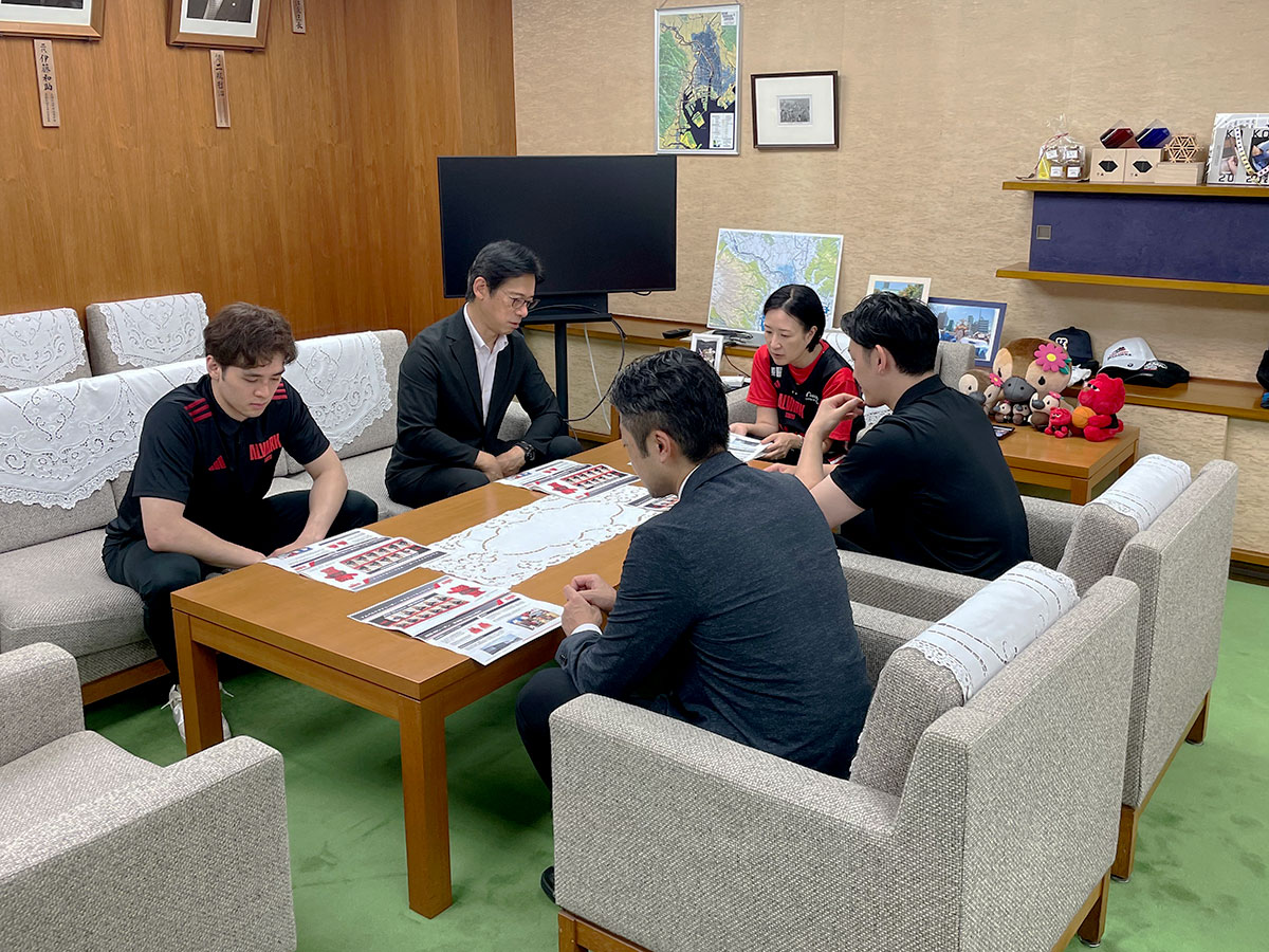10月にオープンする「トヨタアリーナ東京」(江東区青海1)に本拠地を移したBリーグ・B1に所属するプロバスケットボールクラブ「アルバルク東京」が9月5日、江東区役所を訪れ、大久保朋果江東区長を表敬訪問した。